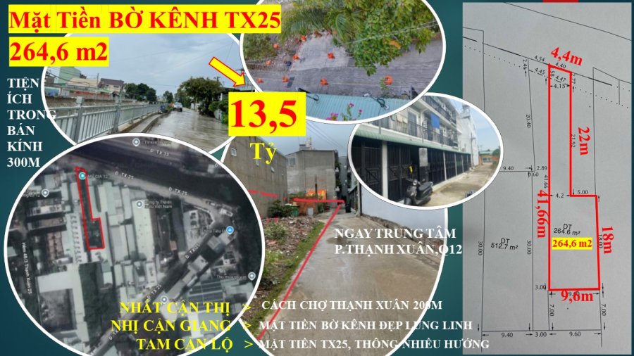 🔴ĐẤT MẶT TIỀN BỜ KÊNH - THẠNH XUÂN 32 - THÔNG chợ Thạnh Xuân - 264m2 thổ cư - 13,5 tỷ