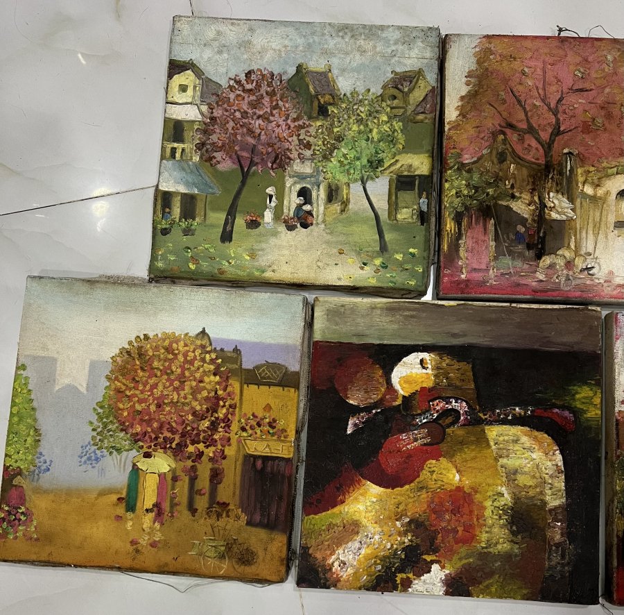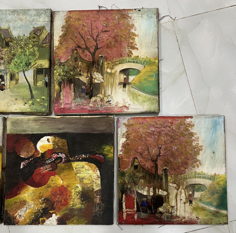 5 bức tranh Sơn dầu củ Kt: 30cm x 30cm mỗi bức Giá 1600k