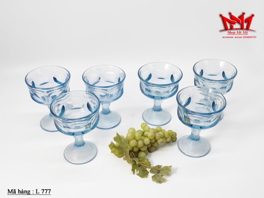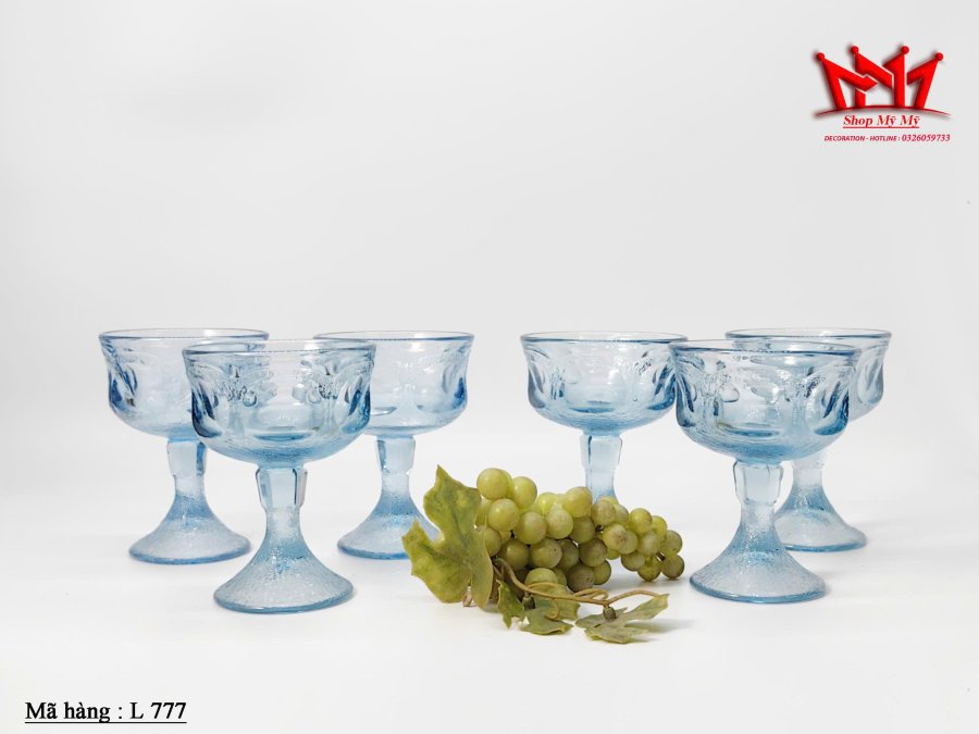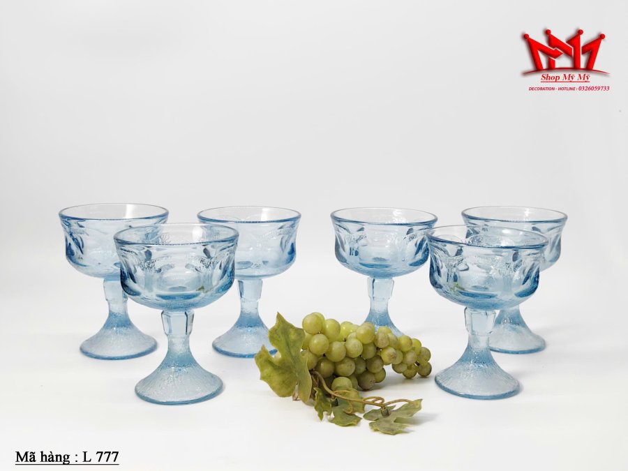 6 Ly sâm panh Fostoria Woodland Blue Sherbets cổ điển
