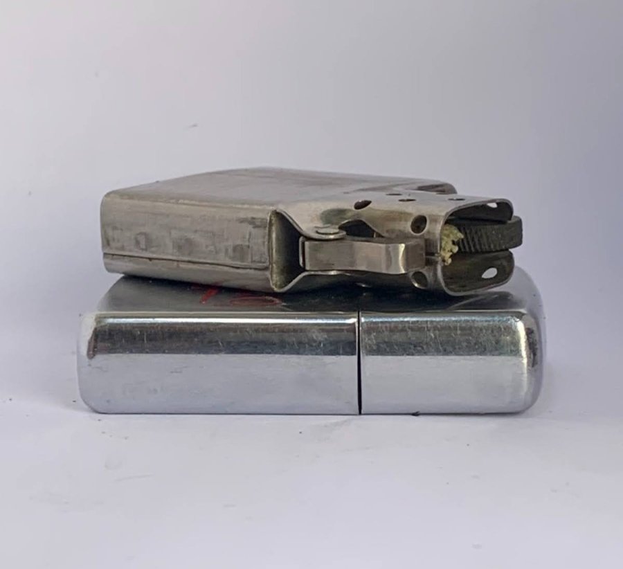 6712- brush chrome chữ xéo 1967-ruột đúng đời , lưỡi gà lá lúa , bấc bột-mộc đáy :IIII-III, pAt :2517191-tình trạng :ko cấn móp -có dăm kim góc-âm hay