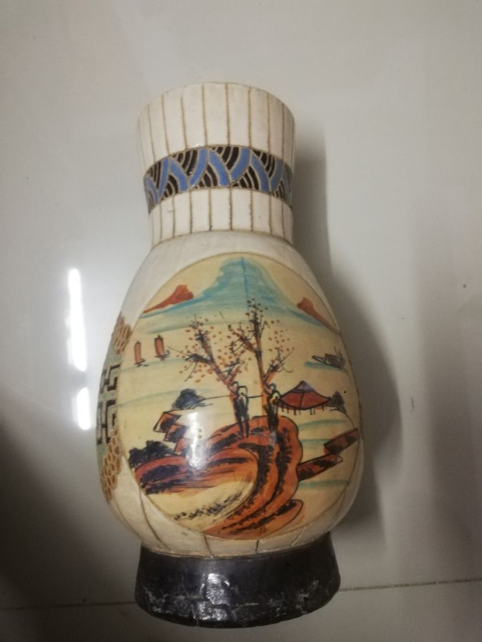 Bình bông nam bộ xưa vẽ màu đẹp, đáy có mộc, cao 30cm, có vết âm lỗi lò: 1, 5 triệu +50k ship