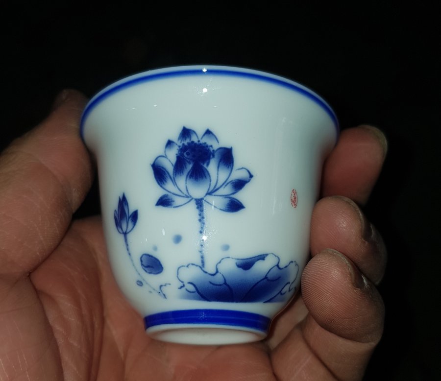 Nhắc đến hoa sen phải nhớ đến Chu Mậu Thúc với tác phẩm để đời lưu danh thiên cổ là Ái Liên Thuyết ( thuyết yêu hoa Sen ) với áng văn so sánh hoa Sen như người quân tử cao quý , thanh sạch . chén dáng cổ điển cốt sứ trong vắt nung già lửa ở 1300 độ C . chén vẽ duy nhất là hoa Sen còn lại là độc sắc sứ tinh hoa với đường kính miệng 6.5cm. cao 5cm. lành lặn. GL385k