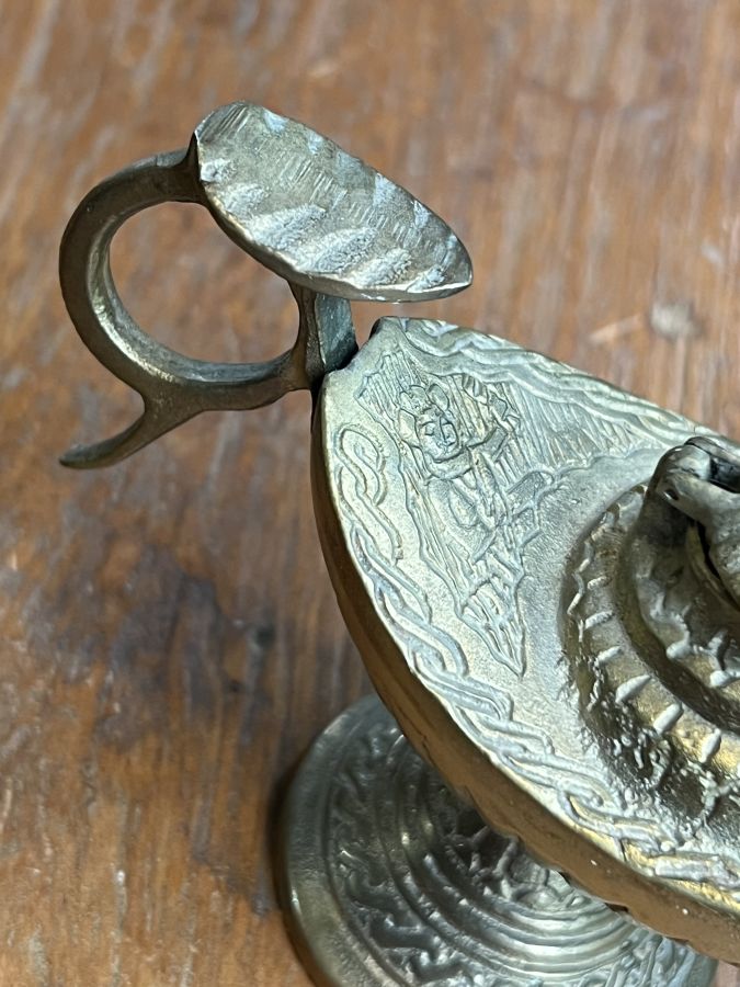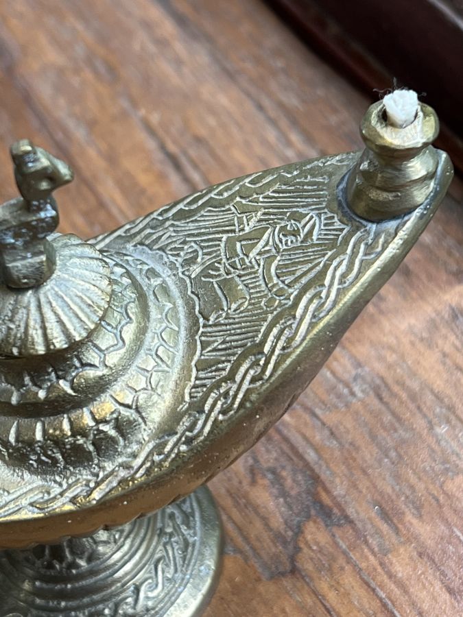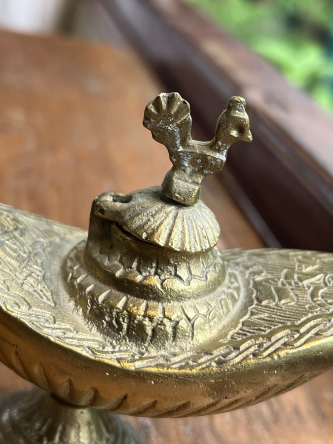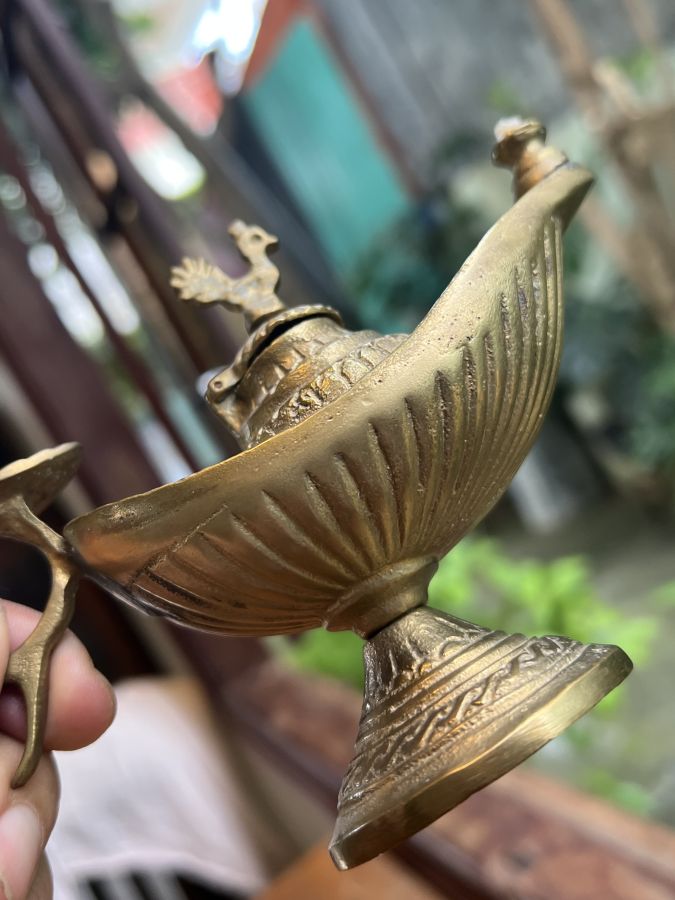 Aladdin và cây đèn thần 🙂 Chất đồng đúc, hoa văn mộc mạc Biểu tượng chú chim may mắn. Ngang 13,5cm cao 10cm sâu 5,5cm Giá êm đầu năm 850k bao ship Phụng 0934751920 Zalo Lạc