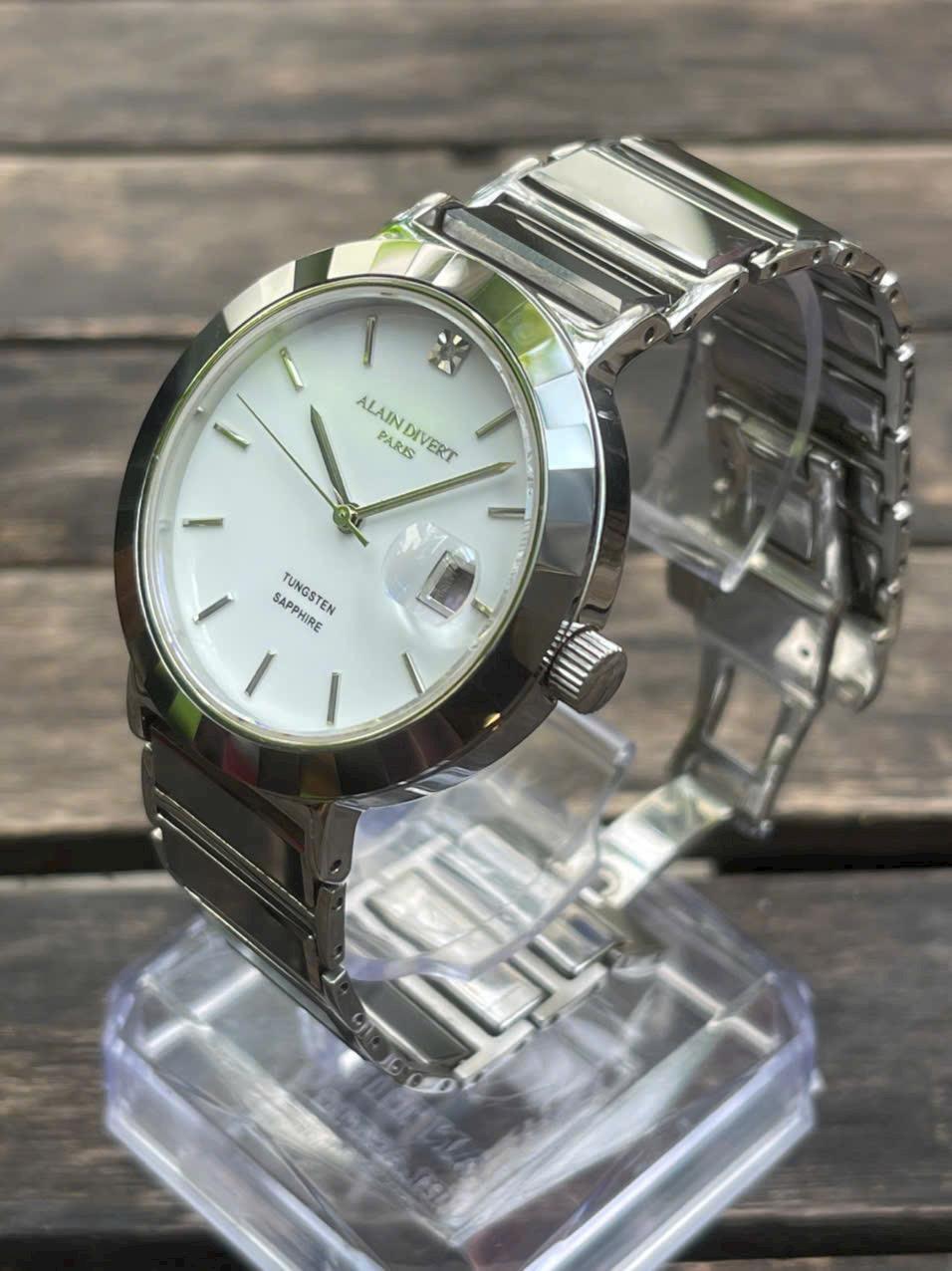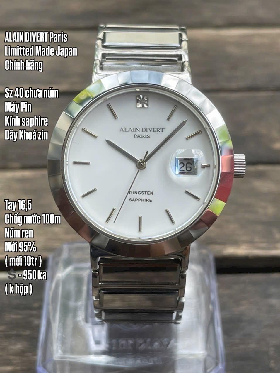 ALAIN DIVERT Paris Limitted / Made JapanChính hãng Sz 40 chưa númMáy PinKính saphire Dây Khoá zin Tay 16,5Chốg nước 100mNúm renMới 95% ( mới 10tr )💲- 950 ka ( k hộp )