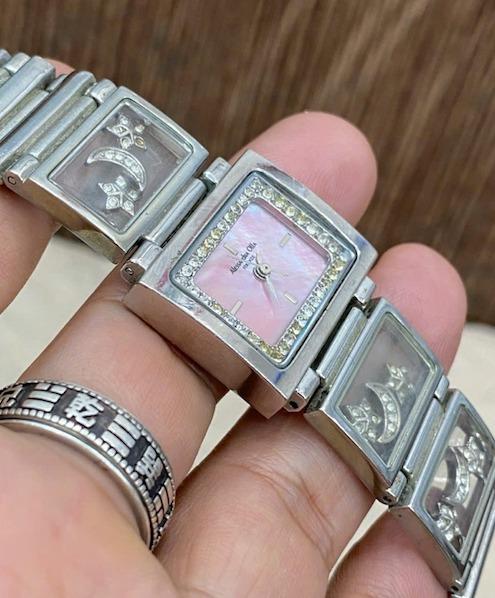 Alessandra Olla-Đồng hồ Nữ, mặt hồng đính đá, kiểu ấn tượng độc đáo
