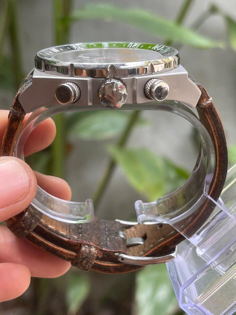 - Máy: Pin Chronograph - Size 45 chưa núm - Kính Thường - Dây khoá zin 🚰 Chống nước : 100 mét- núm ren⏰ Hình thức 95% - ( mới 7triêu ) 💰- 1tr250 ( KO hộp )