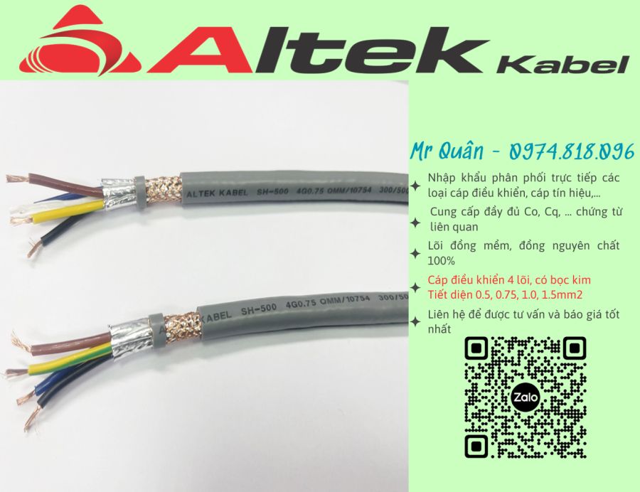 Altek Kabel:Cáp điều khiển 4x1.5 chống nhiễu 2 lớp
