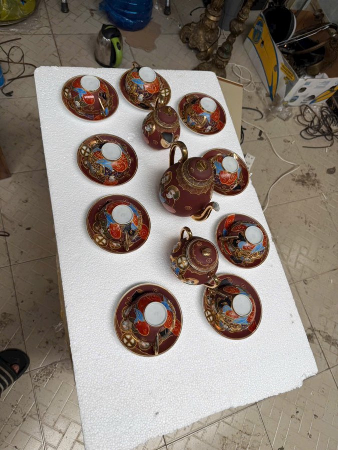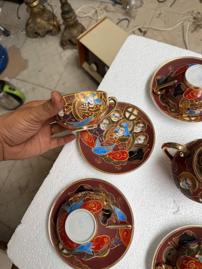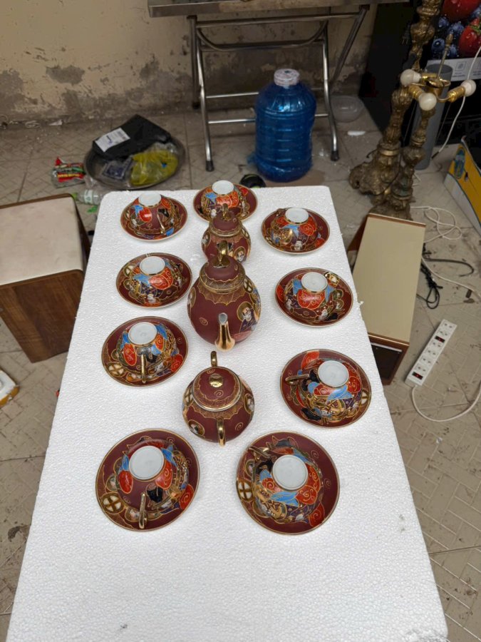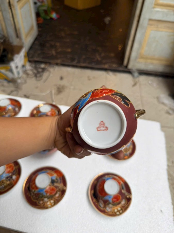 Bộ ấm chén 12 setsuma hàng nhật vẽ vàng có triện mộc lành tít