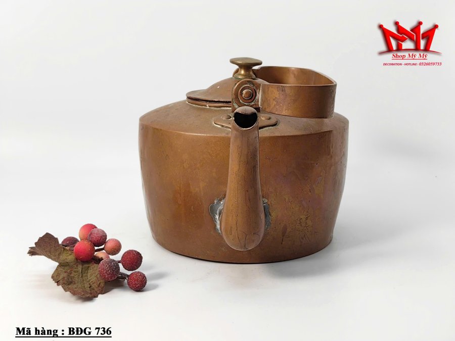 Ấm đun nước bằng đồng đỏ trang trí cổ điển