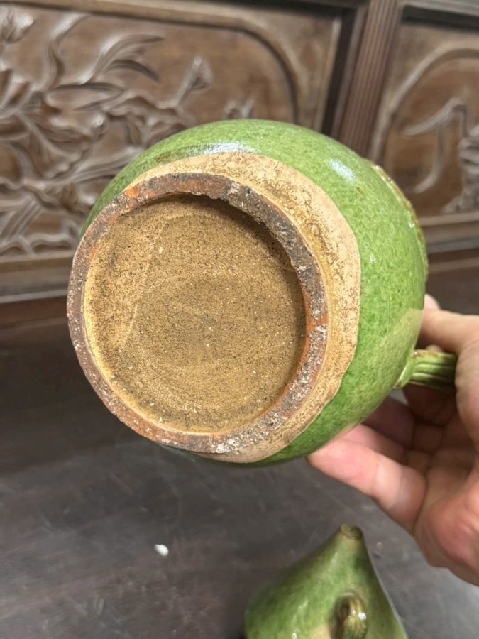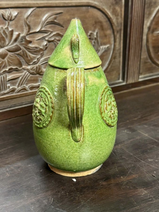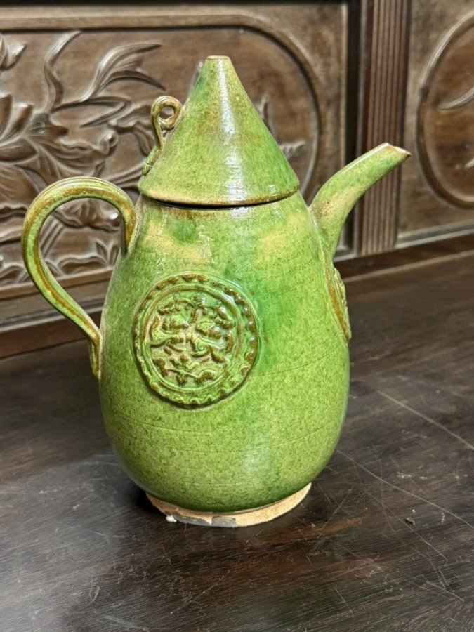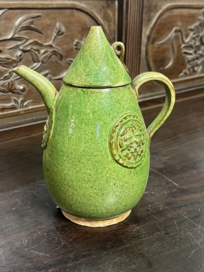Ấm gốm men lục