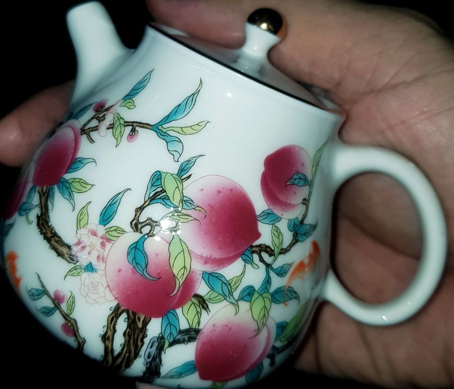 Ấm nhỏ mà có võ dáng siêu đẹp siêu hiếm. Đề tài Đào trường thọ với dung tích chỉ khoảng 150ml. GL 680k