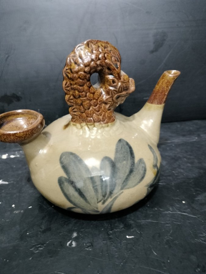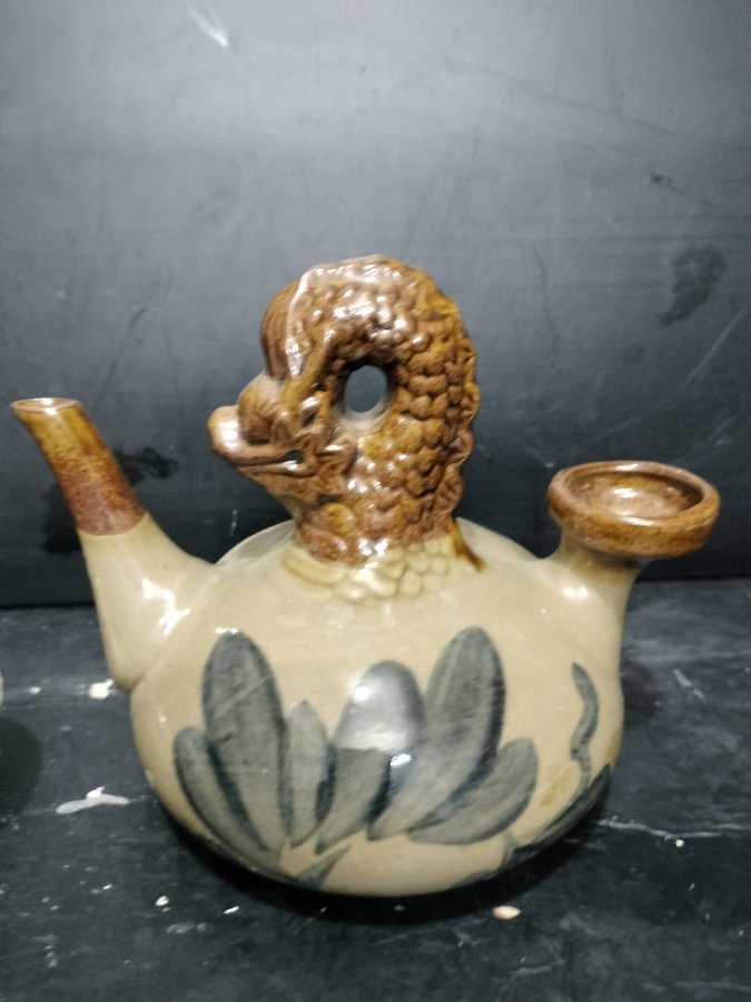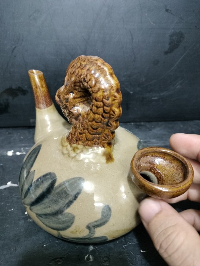 Ấm độc lạ dáng linh Vật. Rót 1 chung tự ngắt hàng xưa cùng cốc thư pháp xưa