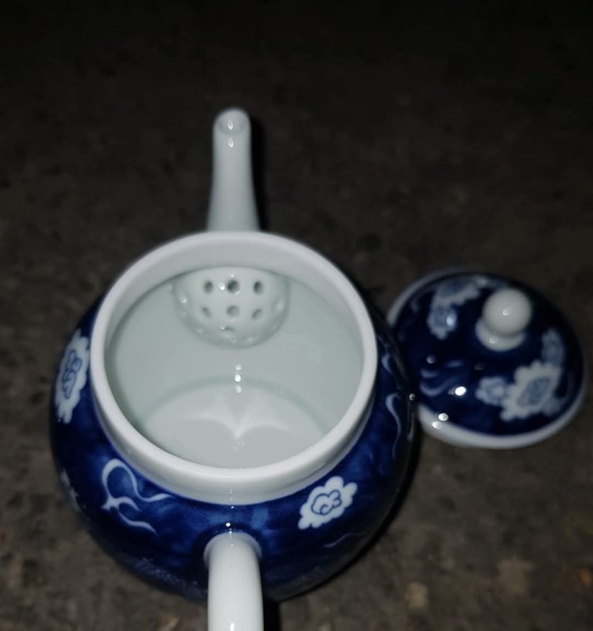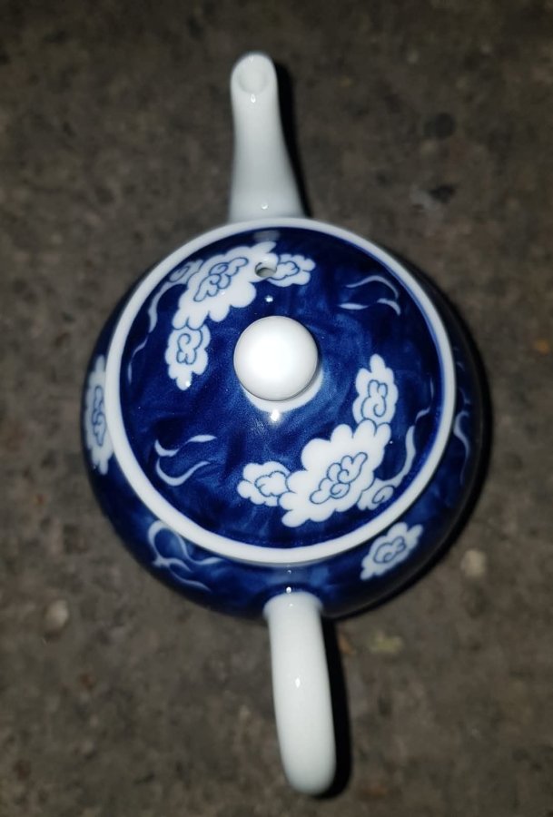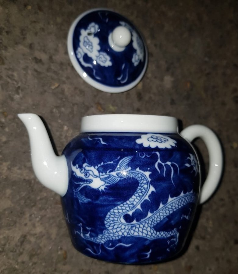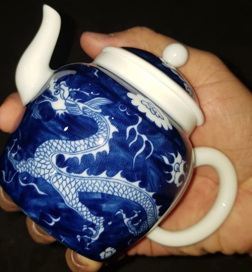 Ấm long ẩn sứ men lam chàm hồi lọc cầu có chất sứ tinh anh trong vắt. Ấm dung tích khoảng 200ml. GL680k