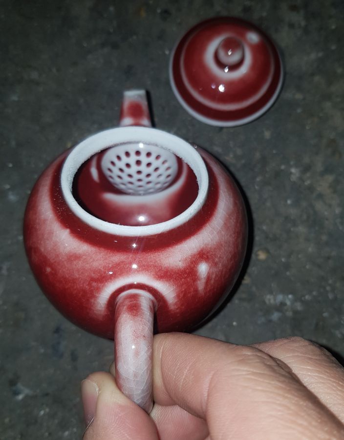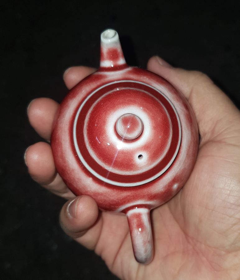 Ấm sứ mini men thúy hồng dung tích khoảng 150ml. lọc gốm. GL790k