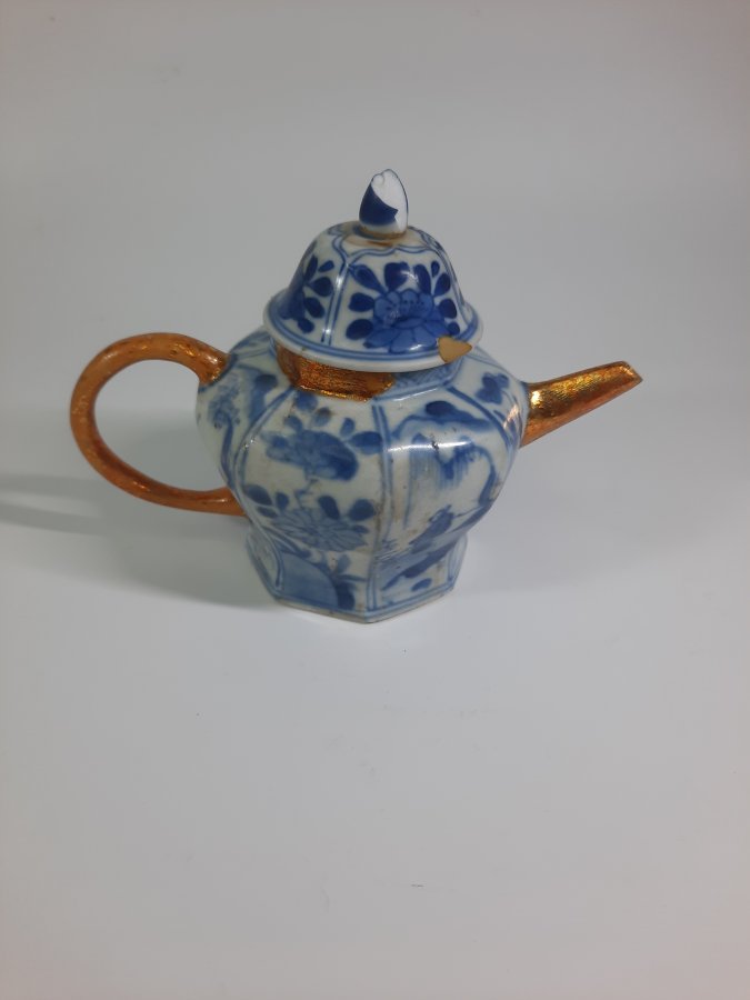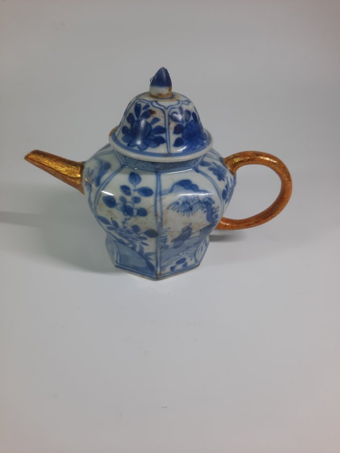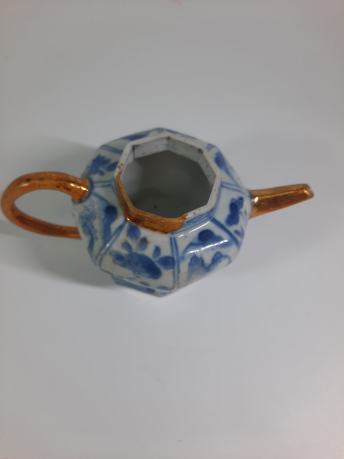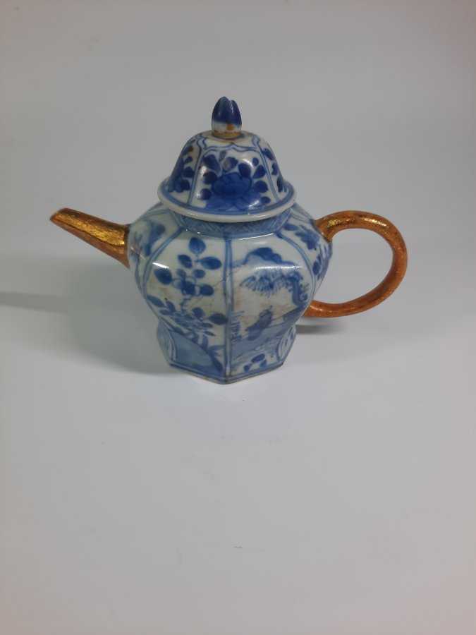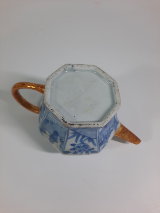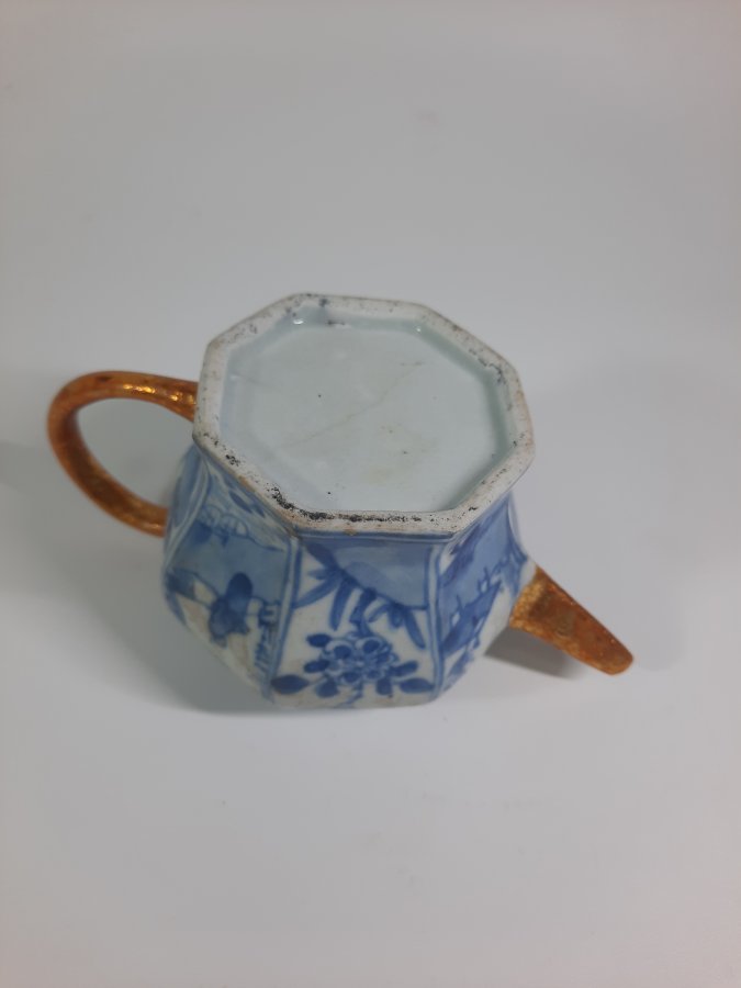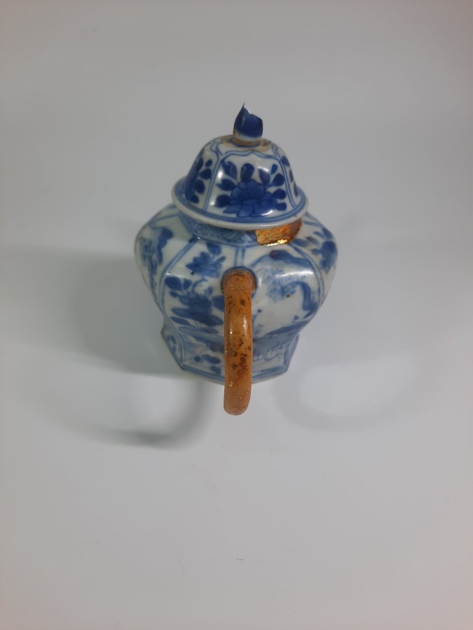 Ấm tàu sứ ung chính vẽ phân ô sơn thủy có nhân vật.