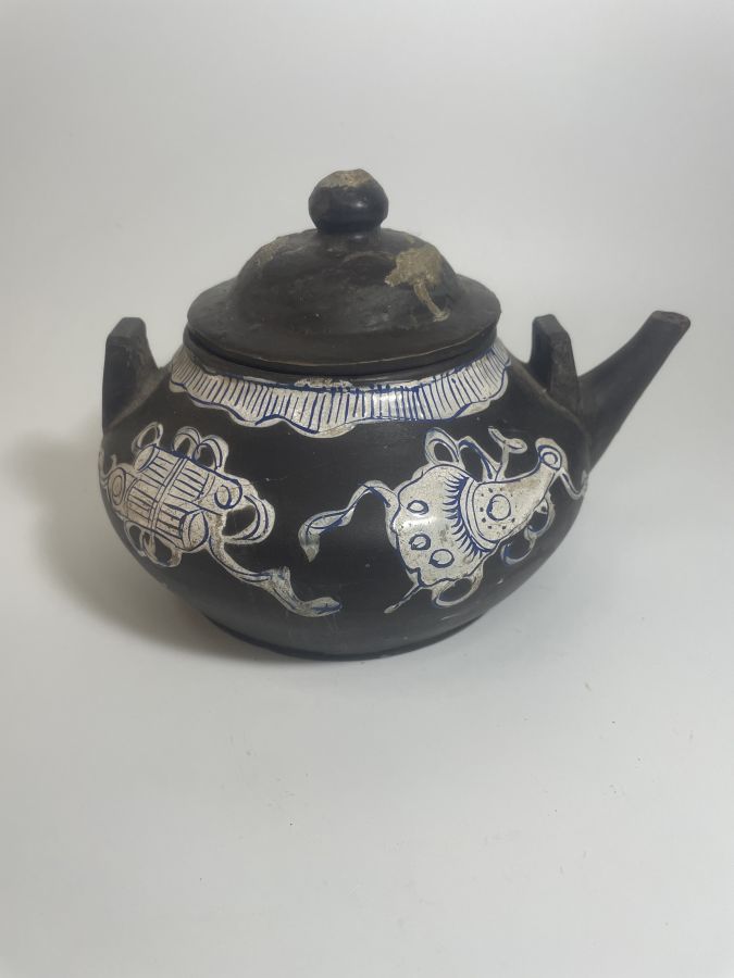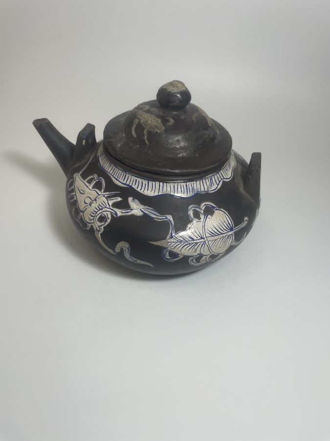 Ấm tử sa , hoạ tiết hồ lô, vòi vuốt kỹ thuật, có hiệu lò