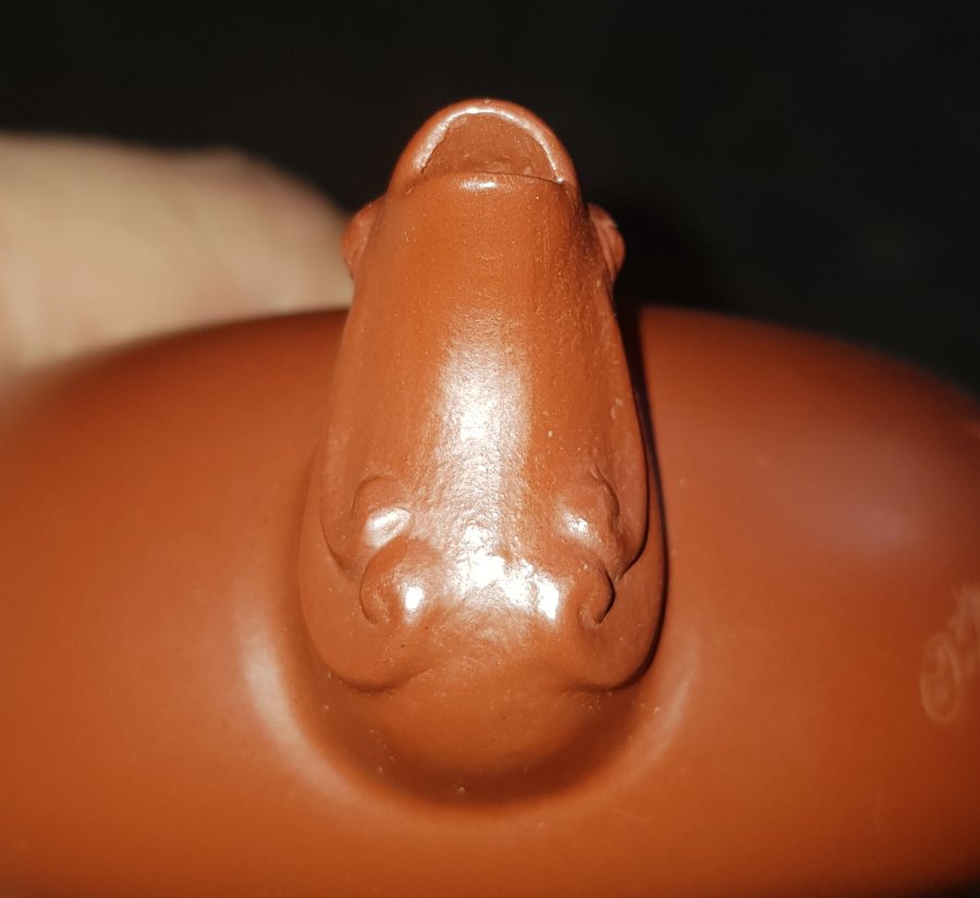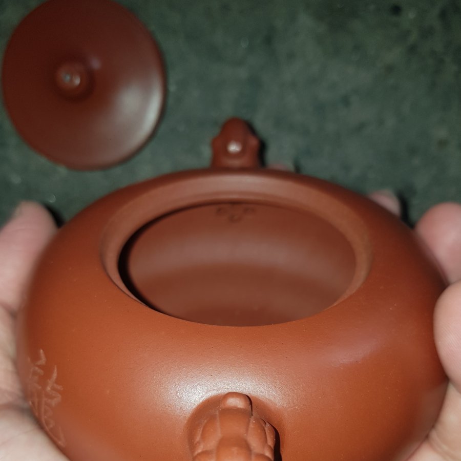 Ấm Tử Sa có đầu vòi là con Phượng Hoàng thể hiện tính âm sinh sôi nẩy nở. Quai cầm là đầu Rồng thể hiện tính dương là dường cột trụ cột. Ấm có lọc thất khổng liền thân. Ấm lành lặn dung tích khoảng 200ml. GL1650k