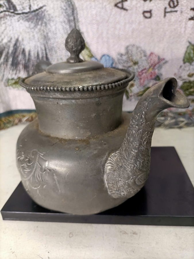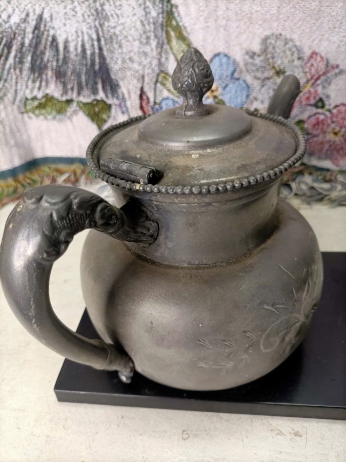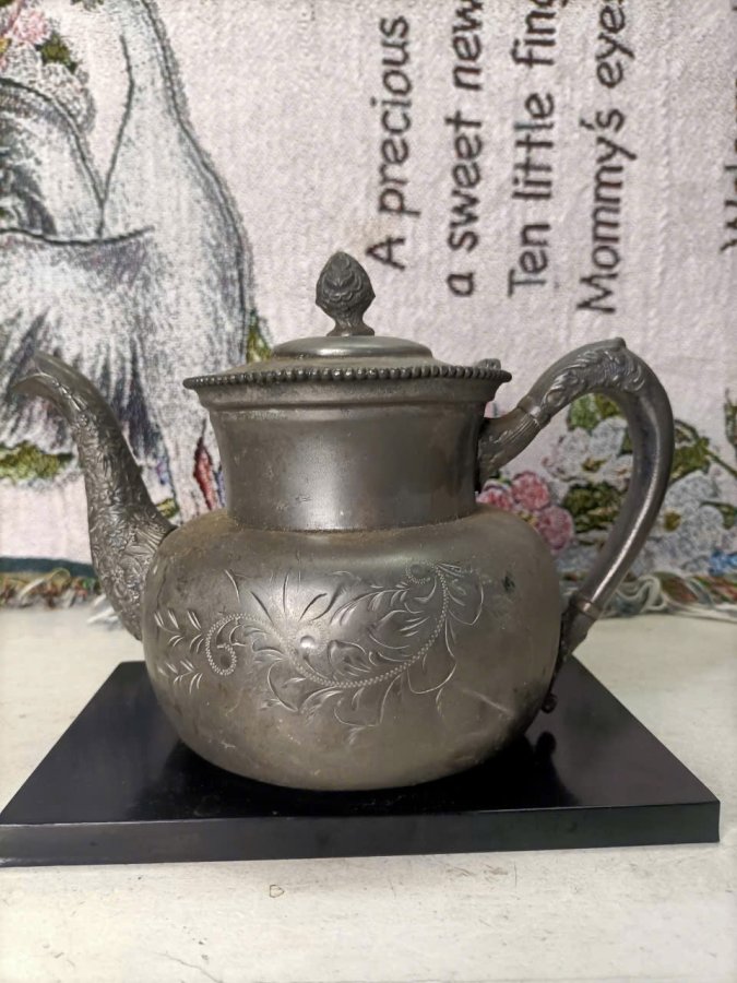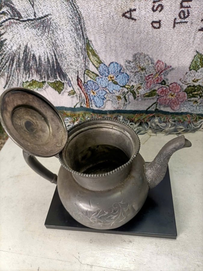 Ấm xưa lòng mạ bạc England hoa văn trạm khắc nổi lành kg lỗi , ngang 23 , cao 16