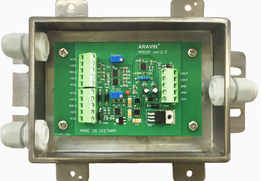 Thiết bị được ứng dụng công nghệ khuếch đại tín hiệu mức thấp, công nghệ chống trôi bởi nhiễu và nhiệt độ tiên tiến đến từ các hãng sản xuất chip hàng đầu Hoa Kỳ. Aravin đưa ra thị trường sản phẩm AM02A đảm bảo tính ổn định cao và đáng tin cậy với 2 kiểu đầu ra 0-10V/ 4-20mA được tích hợp trên cùng một sản phẩm sẽ đáp ứng mọi nhu cầu chuyển đổi tín hiệu load cell analog cho ngành công nghiệp cân điện tử.