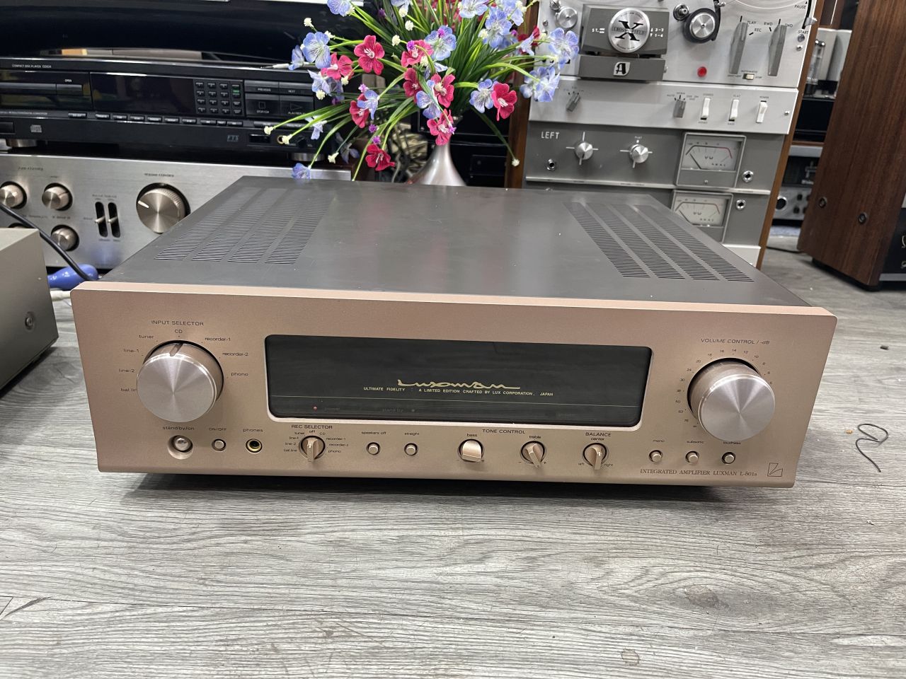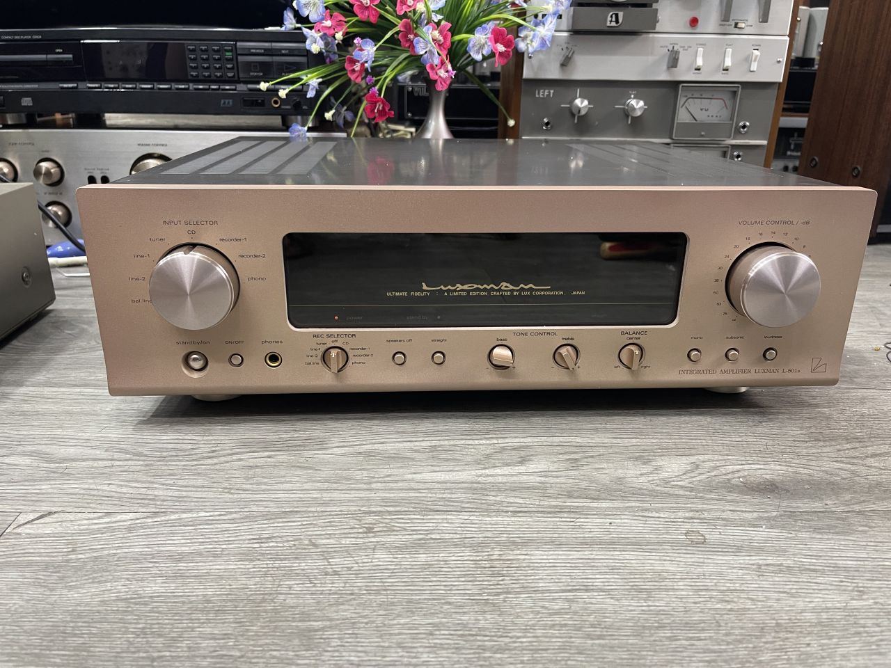 Amply Luxman L501S mặt gold đẹp