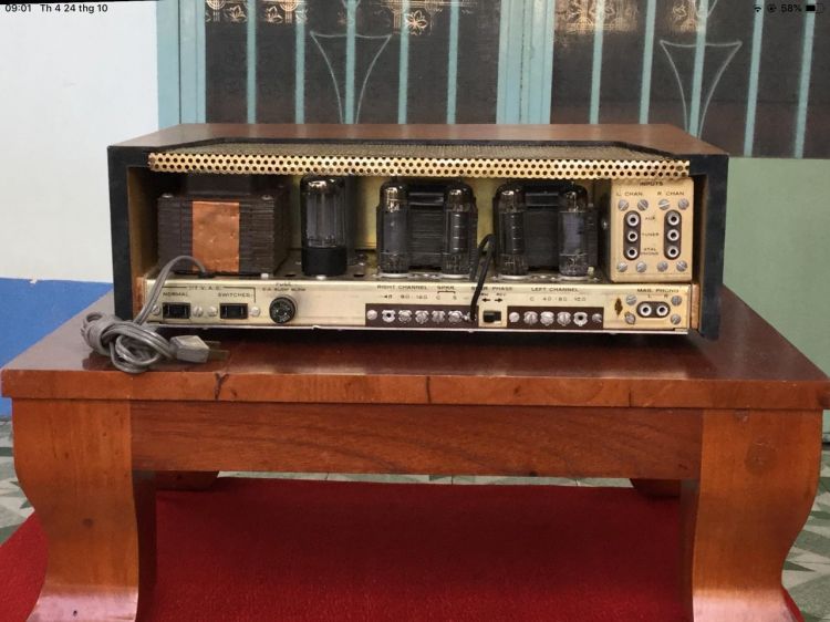 Pre 2 bóng 6AN8, 2 bóng phono 6EU7, driver 2 bóng 6AU6, bóng nắn GZ34, 4 bóng công suất EL84 USA theo máy. Phiên bản này ngoại hình được thiết kế rất ấn tượng từ đường nét tinh tế và sang trọng! Ampli ghép hợp rất nhiều dòng loa cổ như Tannoy, Altec, Electro Voice, Jensen, Bozak, Heathkit, Goodman... Dòng này là đối tác đặc biệt tốt của các dòng loa: JBL L200, L100,...Tannoy .Ditton . Chất âm ngọt ngào, mộc mạc và chi tiết. Máy đẹp long lanh nguyên bản và hoạt động hoàn hảo! Cấu hình như sau: 4 El84 USA 2 6AU6 USA 2 6AU7 USA 2 6AN8 USA 1 Nắng GZ 34 USA