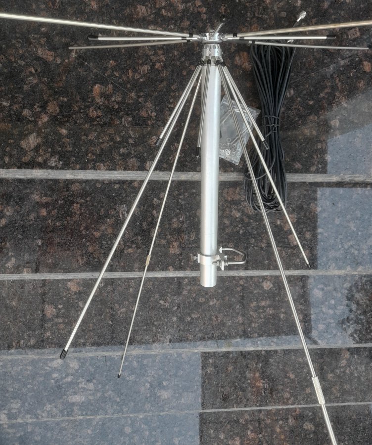 Bộ ăng ten râu Discone gồm 2 tầng, 1 tầng đĩa và 1 tầng chóp nón...
