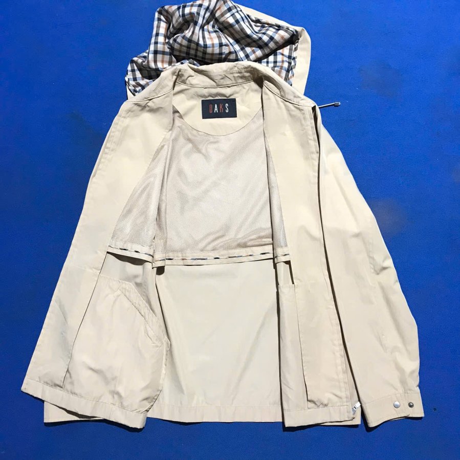 Màu be, logo thêu, khuy khóa dập hiệu, mũ rời