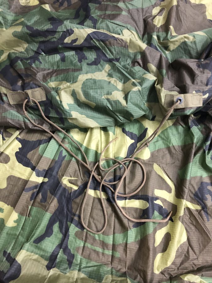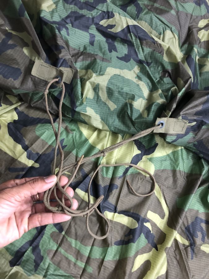 có nút khoen đồng và bên trong dây dù màu xanh oliu