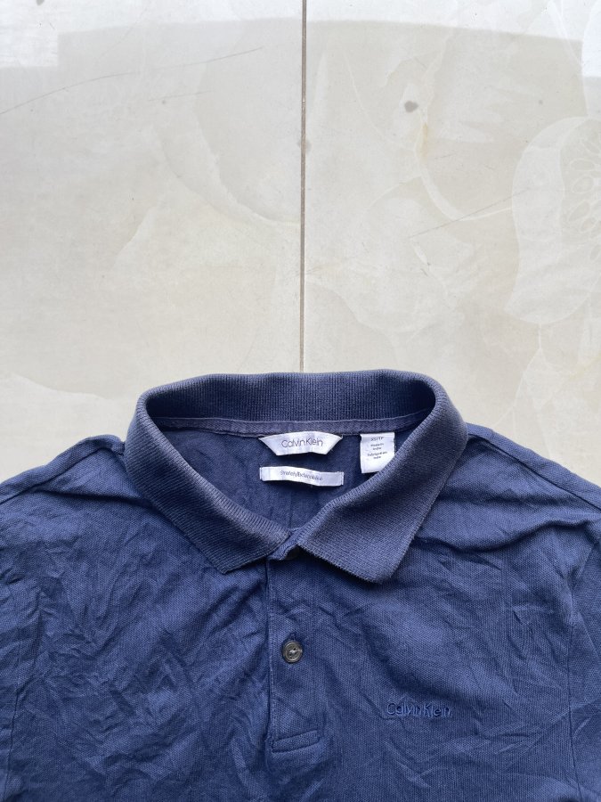 Áo polo Calvin Klein nam màu xanh đậm, chất liệu vải thun mềm mại, thoáng mát.
