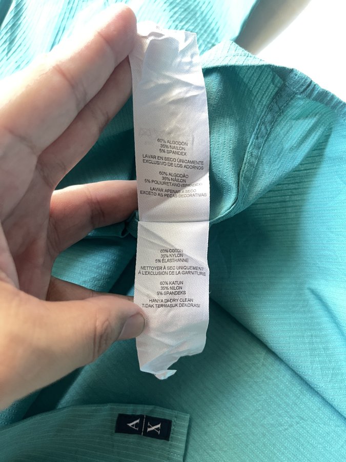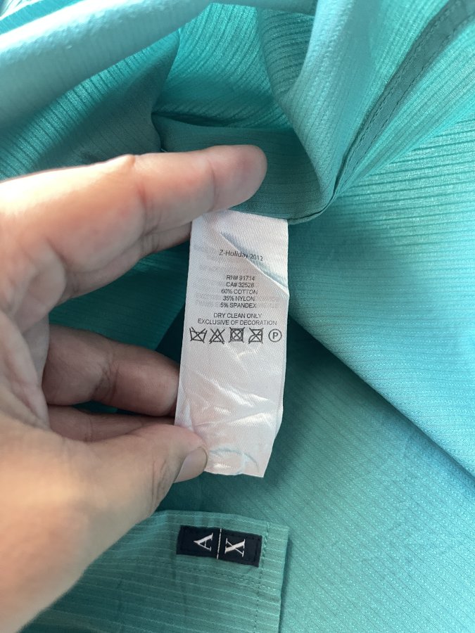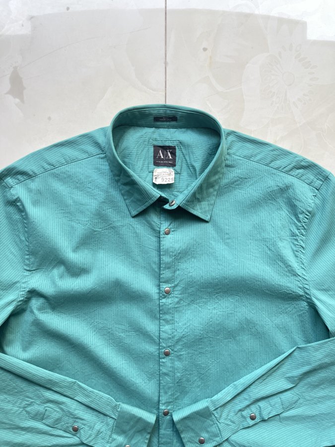 Áo sơ mi nam Armani Exchange màu xanh ngọc, chất liệu cotton, nylon, spandex.