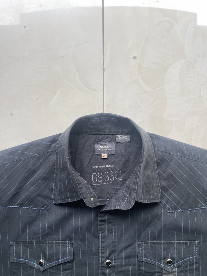Áo sơ mi nam G-Star Raw GS.3301 màu đen sọc, chất liệu 100% cotton thoáng mát.