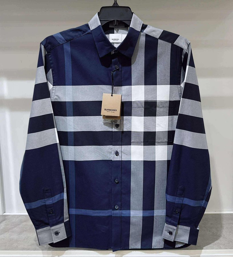 Áo Sơ Mi Nam Burberry Check Shirt Màu Kẻ Xanh Navy