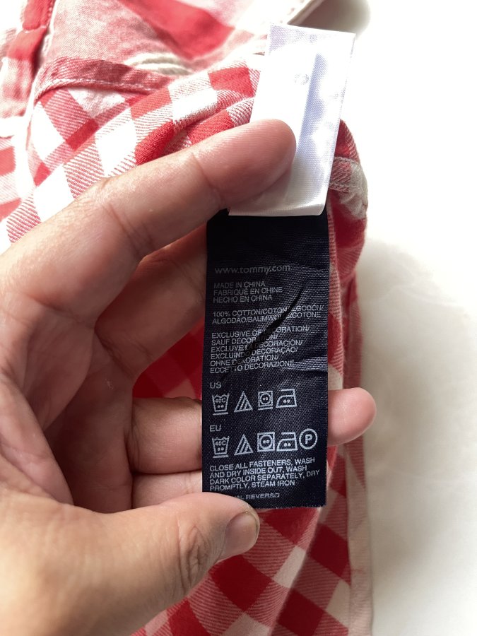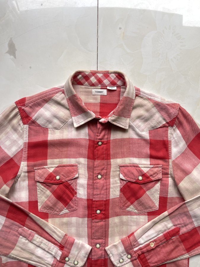 Áo sơ mi nam Tommy Hilfiger kẻ caro đỏ trắng, chất liệu 100% cotton thoáng mát.