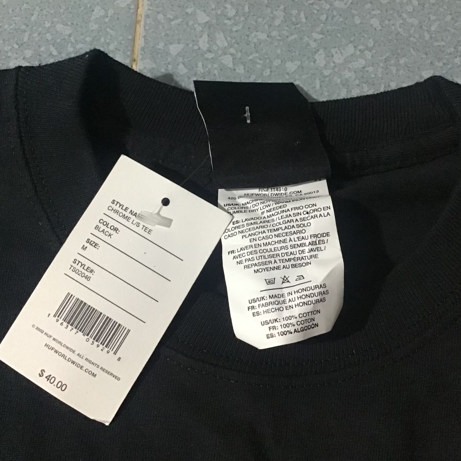 Áo thùn dày tay HUF Mỹ - Made in HHonduras Size M V 47 N 102 D 70