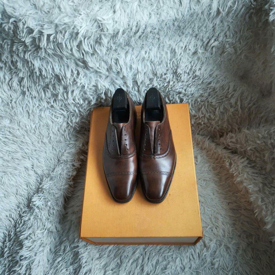 Đế da khâu goodyear welted lấp rãnh.