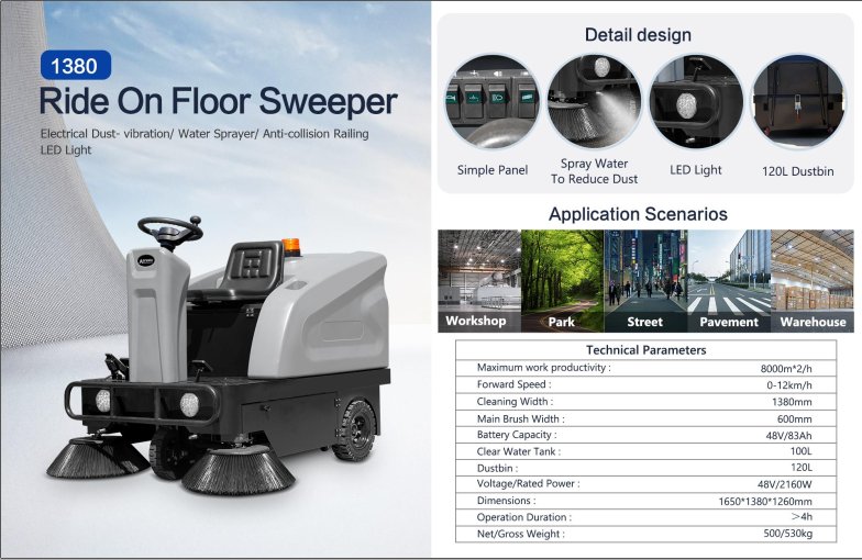 ARTISON 1380 là dòng máy quét rác ngồi lái hiện đại, thiết kế nhỏ gọn nhưng mạnh mẽ, kết hợp chức năng quét – gom – hút bụi chỉ trong một lần vận hành. Phù hợp hoàn hảo cho nhà xưởng, khu công nghiệp, trung tâm thương mại, bãi xe và khu đô thị – nơi yêu cầu độ sạch cao và tính cơ động linh hoạt.