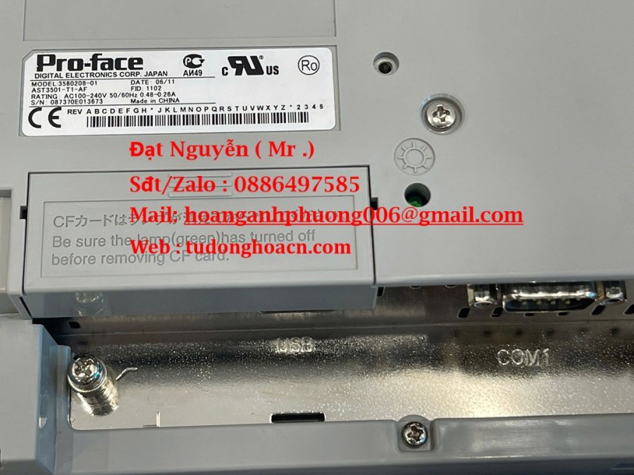 AST3501-T1-AF là màn hình HMI thuộc dòng Pro-face ST3000 (ST-3501T), được sử dụng phổ biến trong hệ thống máy móc và dây chuyền tự động hóa nhờ khả năng vận hành ổn định, hiển thị rõ ràng chuẩn VGA và hỗ trợ nhiều chuẩn giao tiếp serial.