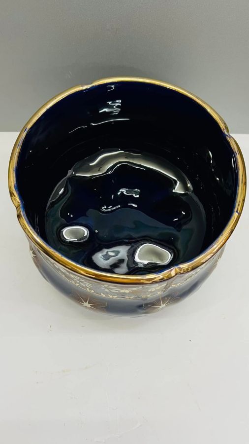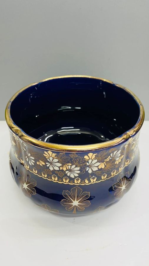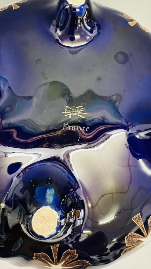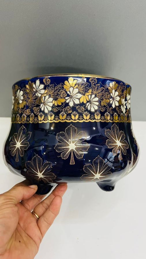 Âu Pháp Cổ xanh Coban mạ vàng vẽ men nổi sx TK 19 tuyệt đẹp có mộc triện France rất đáng được sưu tầm