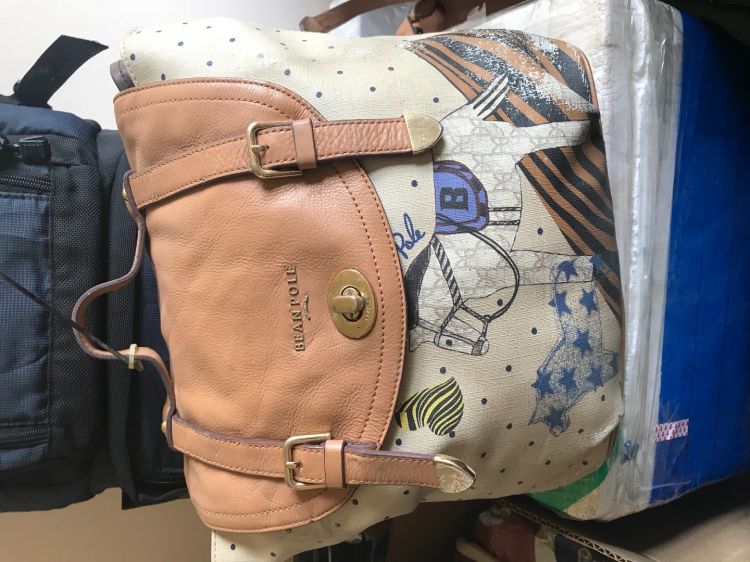 Ba lô phối da thật và canvas hoạ tiết rất đẹp , còn rất đẹp , trong lót lụa thêu biểu tượng hãng rất đẹp . Đeo di học đi choi hay di làm đều ok hết