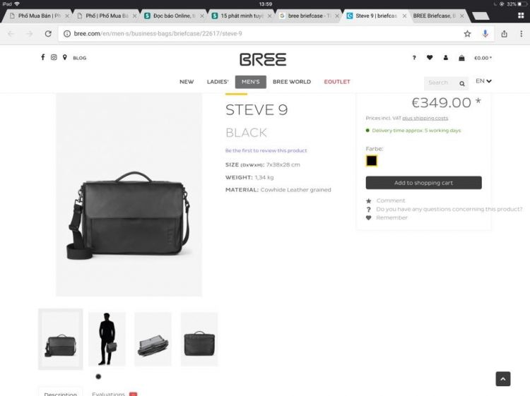 Bree thì em không giới thiệu nữa vì quá quen rồi chất da đượ thuộc tuyệt vời dày dai và mịn cặ để dc rất nhiều đồ đi công tác 1-2 ngày ok luôn . Trong được lót lụa tên hãng cực chất . Rất nhiều ngăn tiện dụng tên thương hiệu dập tùm lum chỗ ae nhé . Giá hàng bree hok hề rẻ nha ae. Chất lượng thì ai đã dùng hàng bree rồi thì mới hiểu giá trị e nó . Túi được làm bằng da bê. E nó nhăn vì lâu không dùng tới ae để đồ một thời gian là thẳng ra đẹp liền . Mẫu tương tự đang bán 350 euro