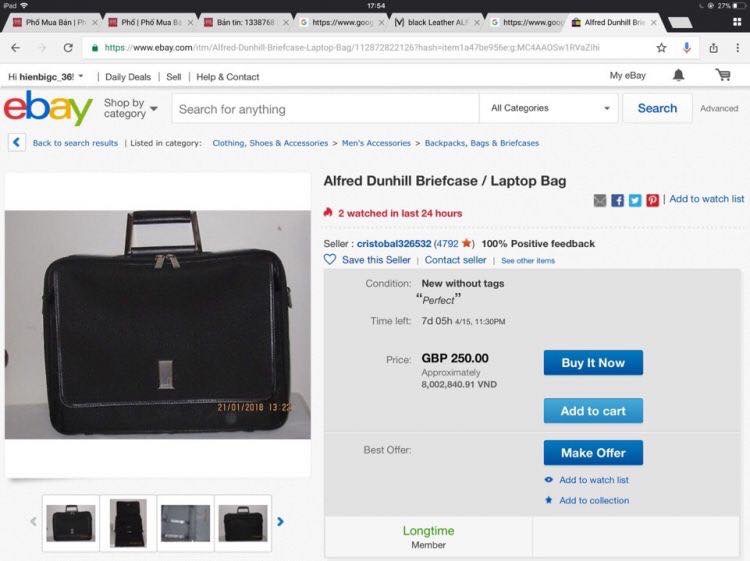Cặp đơn giản và sang trọng , mới đẹp trong ra ngoài . Ebay đang bán 250 gbp khoảng 8 tr mấy