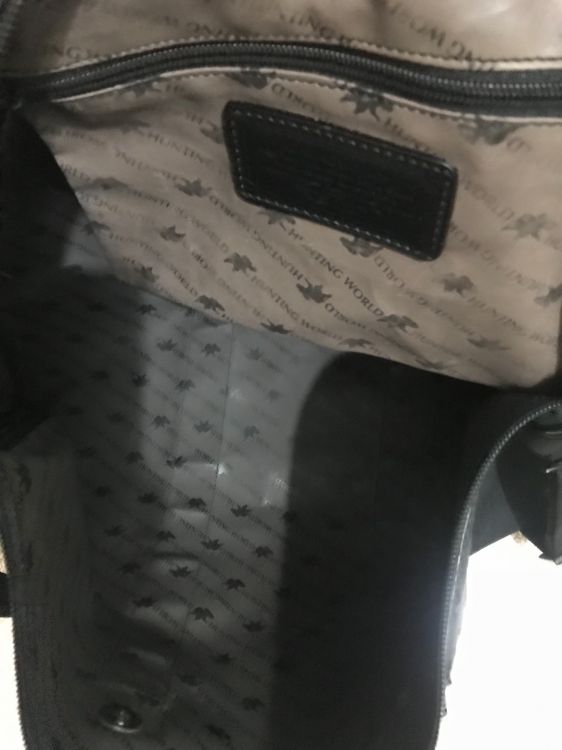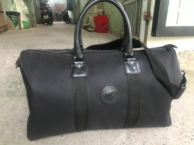 Authentic em túi du lịch hàng hiệu HUNTING WORLD made in italy tuyệt đẹp new 98% tùe tron ra ngoài . Ebay dang bán e tương tụe hàng đã dùng rồi là gần 15 triệu nha ae . Da thật phối vải bố hãng cực chất và bền . e đền 10 lần . Các chốt nhỏ dập tên thương hiệu sắc net luôn nha ae . Hiếm e nào còn đẹp và chất thế này .