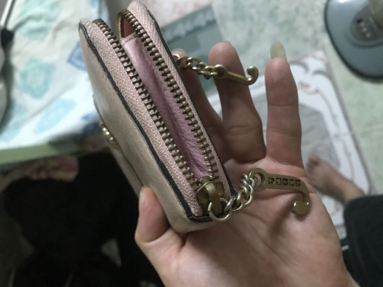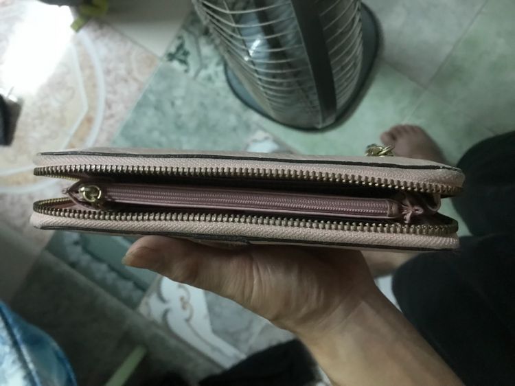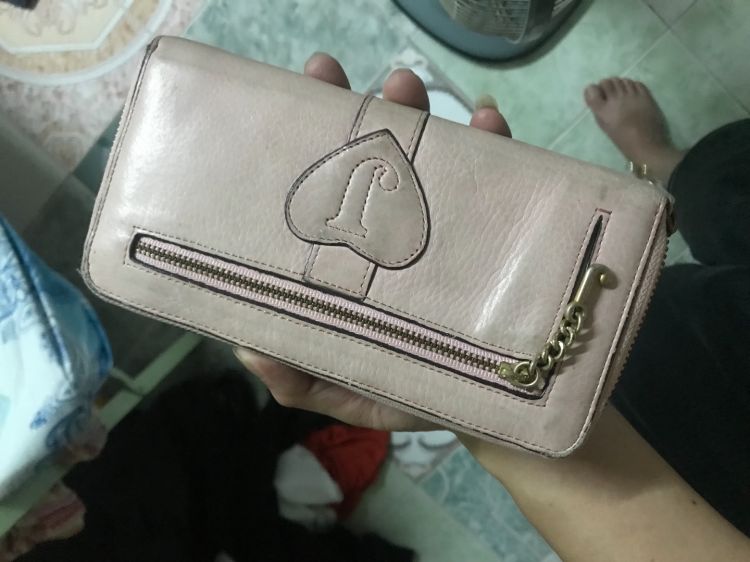 E ví da bê hàng hiệu juitcy da rất mềm . Nhiều ngăn để thẻ giấy toè và tiền . Màu hồng nhạt dễ thương lém . Da bê mềm mịn và cực bền. Zip bằng đồng