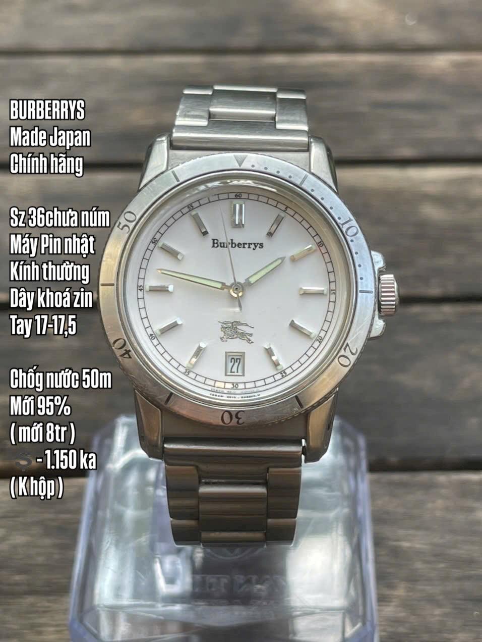 B U R B E R R Y S / Made JapanChính hãng Sz 36chưa númMáy Pin nhậtKính thường Dây khoá zinTay 17-17,5Chốg nước 50mMới 95% ( mới 8tr )💲- 1.150 ka ( K hộp )