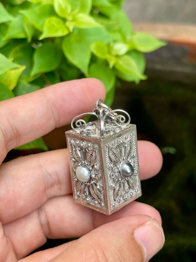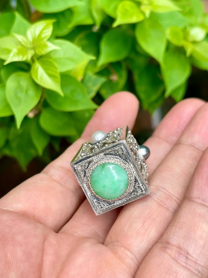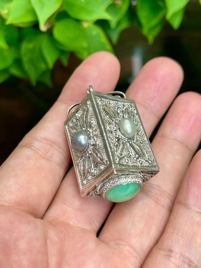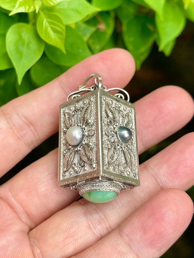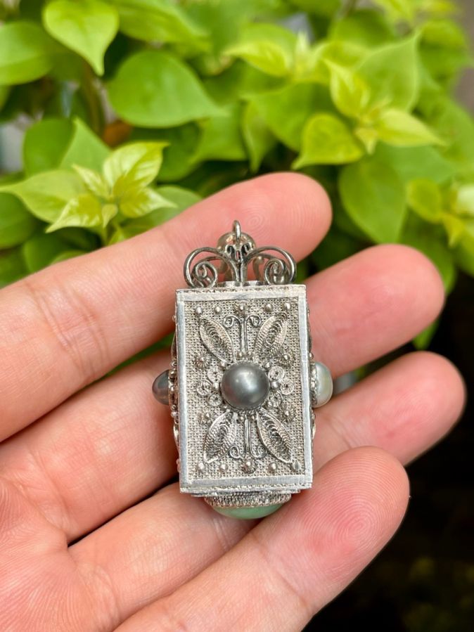 Mặt chuyền Bạc xưa cổ thủ công tỉ mỉ , đính trai thiên nhiên và viên jade deite A Xanh đẹp