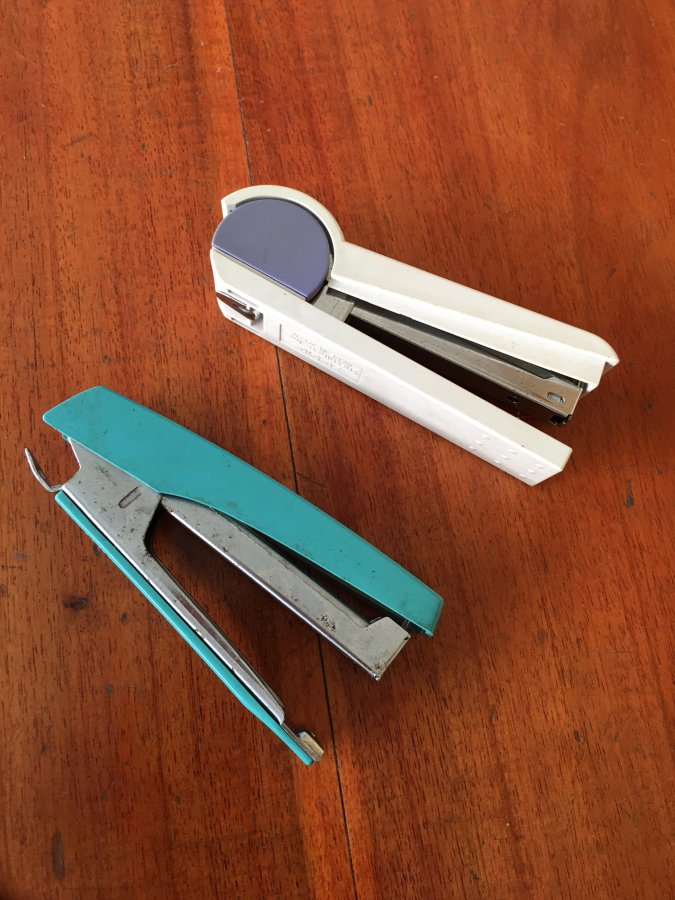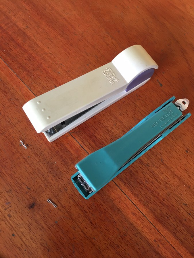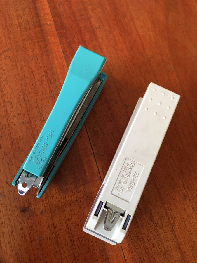 Bán cặp bấm ghim Japan còn như mới, hoạt động hoàn hảo. Cây trắng Wevox no.10, cây xanh Max hd-10d, cả 2 đều là hàng xưa Japan, sử dụng ghim thông dụng bán nhiều ở tiệm văn phòng phẩm