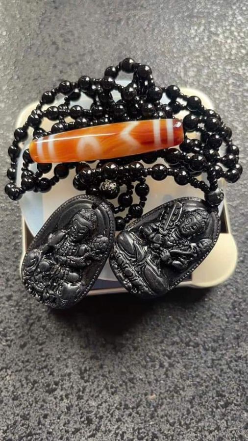 Bán 2 mặt dây đeo đá obsidian + một dzi thiên nhiên không xử lý