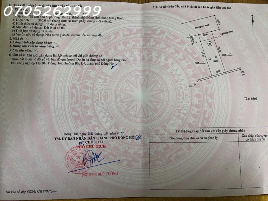 Bán 300m2. 10x30m full thổ cư, Phường Bắc Lý, TP Đồng Hới, Quảng Bình, giá đầu tư