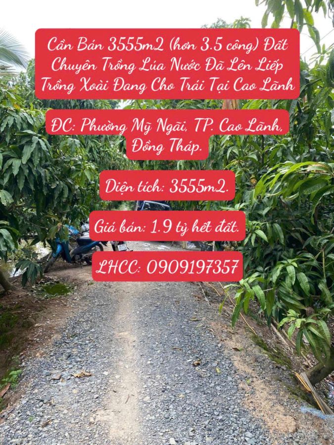 Cần Bán 3555m2 (hơn 3.5 công) Đất Chuyên Trồng Lúa Nước Đã Lên Liếp Trồng Xoài Đang Cho Trái Tại Cao Lãnh