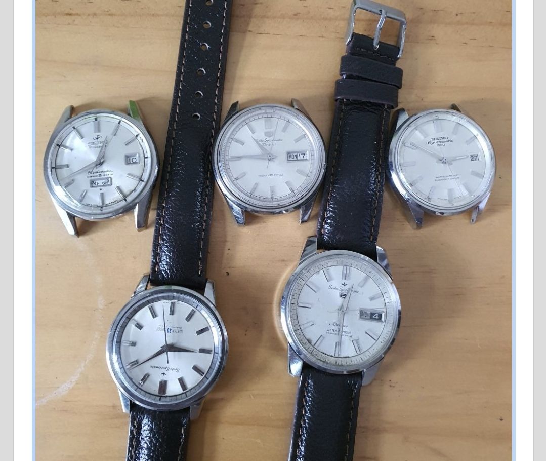 Cần bán 5 chiếc Seiko như hình,đang hoạt động,ngày trước mua cất tủ chơi,giờ thanh lý lỗ gần 50%,bao nguyên zin,tất cả đều cũ theo time...